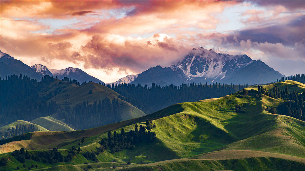 2019年7月10日,新疆獨庫公路蜿蜒在天山山脈的草原山谷中。黃光浩/視覺中國