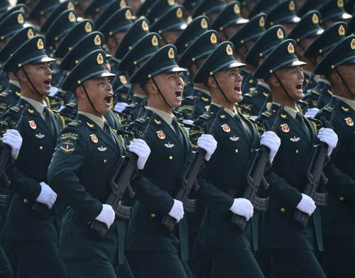 2019年10月1日,慶祝中華人民共和國成立70周年大會在北京天安門廣場隆重舉行。這是火箭軍方隊接受檢閱。新華社記者郭緒雷攝