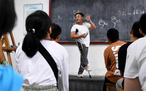 2019年9月9日,在位于西安市的陜西省城市經濟學校,計算機平面設計專業(yè)的美術老師王旭陽在給新生講授繪畫基礎知識。該校是西安唯一一所針對殘障人士設立的特殊教育中等職業(yè)學校。新華社記者劉瀟攝