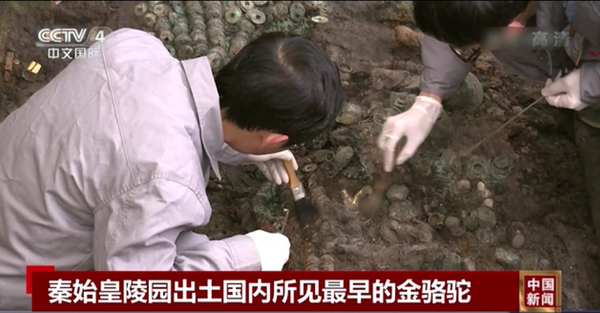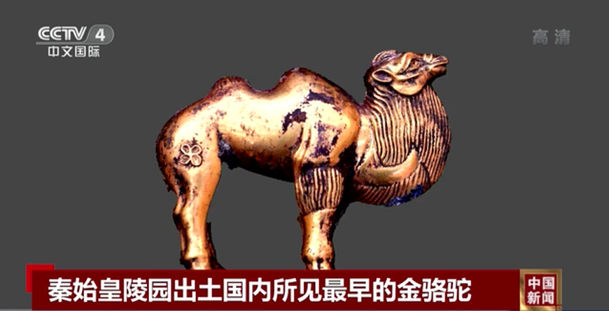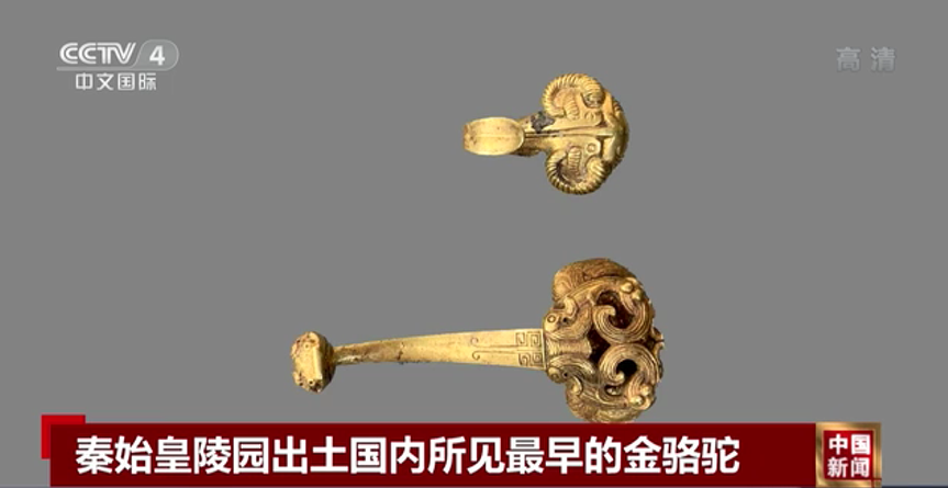 出土的金駱駝是目前國內(nèi)所見最早的單體金駱駝。這些出土器物不僅為漢代絲綢之路開通以前,中西文化交流提供了重要依據(jù),也為秦代政治、經(jīng)濟(jì)、軍事、科技、文化等研究提供了重要的實物材料。