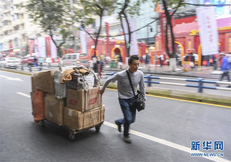 冉光輝用小板車載著貨物,前往發(fā)貨地點(1月5日攝)。新華社記者王全超攝