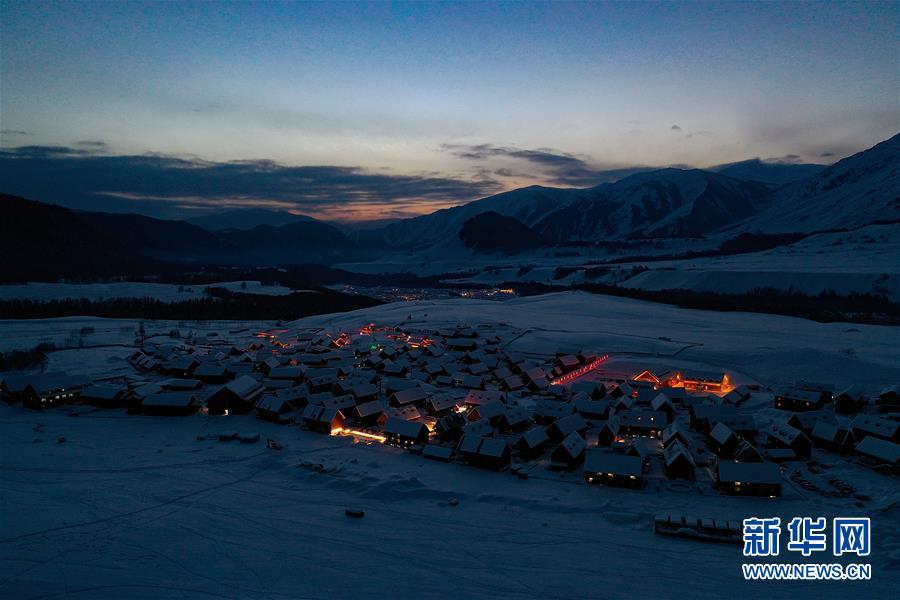 這是2019年12月31日拍攝的傍晚的禾木村(無人機(jī)照片)。 在新疆阿勒泰地區(qū)布爾津縣禾木村,不少游客選擇以觀光旅游的方式“別樣跨年”。游客們觀賞雪鄉(xiāng)風(fēng)景,體驗(yàn)馬拉爬犁、騎馬等冬游項(xiàng)目,參加篝火狂歡、潑雪迎新年等慶祝活動(dòng),冰天雪地?zé)崆椴粶p,別有一番風(fēng)情。 新華社記者 宋彥樺 攝