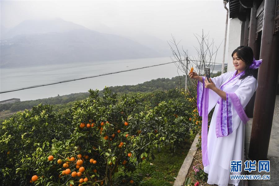工作人員在重慶市奉節(jié)縣安坪鎮(zhèn)三坨村通過電商直播平臺推介臍橙產(chǎn)品(2019年12月28日攝)。新華社記者王全超攝