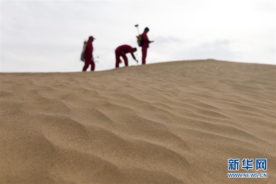 1月13日,測量工在測線上布設(shè)炮點(diǎn)樁號(hào)。地球物理勘探是油氣開發(fā)的第一步,相當(dāng)于給地球做CT。物探工人按照嚴(yán)格的測線部署,在相應(yīng)位置鉆井,然后實(shí)施地震,采集地震波數(shù)據(jù)??蒲腥藛T通過數(shù)據(jù)組成的“CT片”,就能夠清晰地“看”到地下的地質(zhì)結(jié)構(gòu),判斷哪里埋藏有石油或者天然氣。2019年10月,東方地球物理勘探有限責(zé)任公司塔里木物探處2113隊(duì)進(jìn)入新疆塔克拉瑪干沙漠腹地,開始中古14-21、塔中2兩個(gè)區(qū)塊的三維地震勘探。近2000名物探工人將在1000平方公里的范圍內(nèi)一直工作到2020年4月,這也意味著他們將在塔克拉瑪干沙漠腹地連續(xù)度過第14個(gè)除夕夜。蘊(yùn)藏著豐富石油天然氣資源的新疆塔克拉瑪干沙漠有“死亡之?!敝Q,氣候干燥,年降水量在50毫米以下,冬季地表最低溫度超過零下30攝氏度,是世界油氣勘探難度最大的地區(qū)之一。為避開風(fēng)季,物探工人每年9、10月份進(jìn)入沙漠,一直工作到來年4月,夜以繼日與黃沙、嚴(yán)寒為伴,用辛勤的汗水,為祖國找油找氣。新華社記者丁磊攝