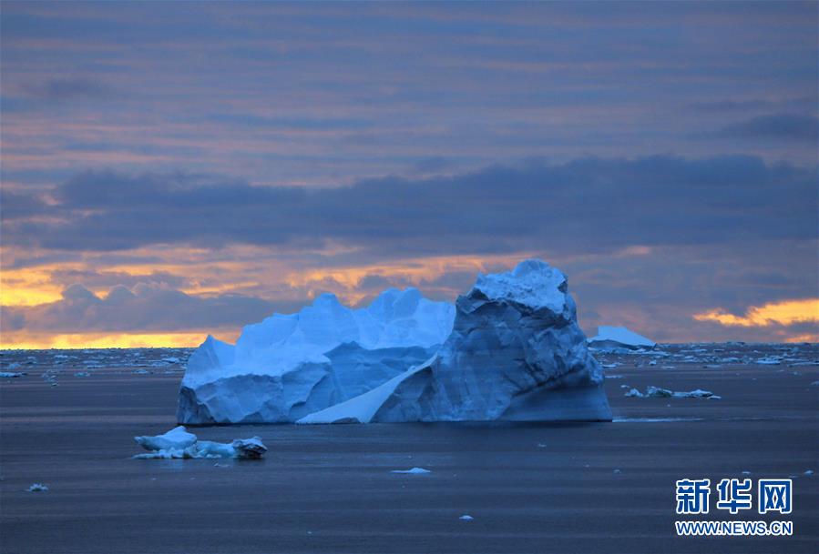 南大洋上的午夜冰山(2019年12月28日攝)。新華社記者劉詩平攝