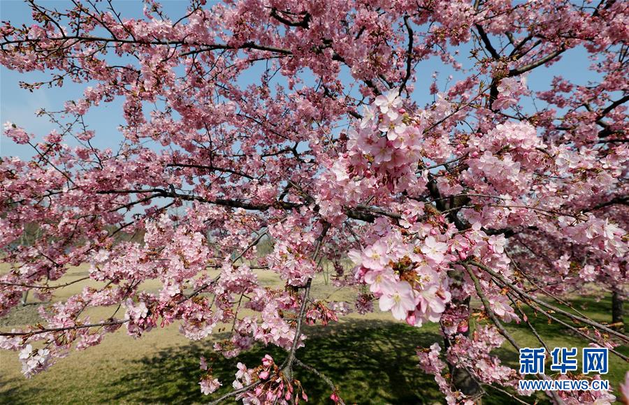這是2月24日在上海松江辰山植物園內(nèi)拍攝的河津櫻。 新華社記者 方喆 攝