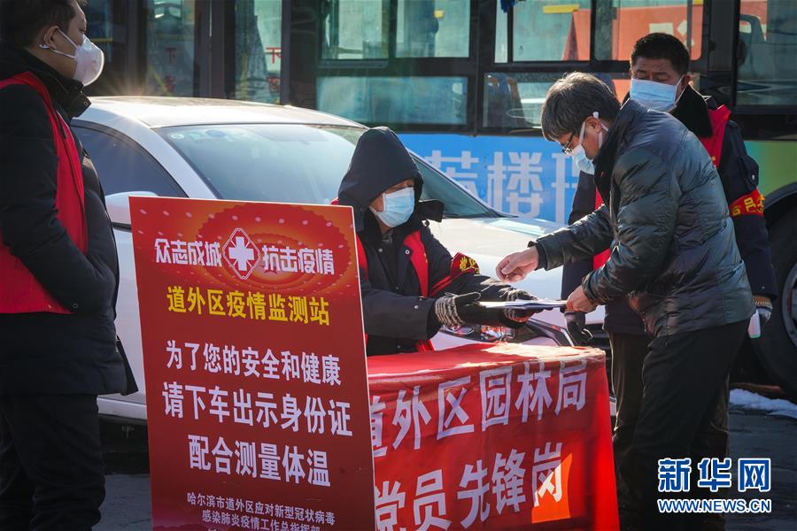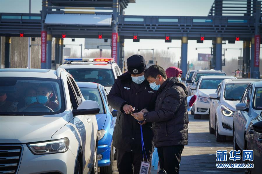 2月24日,工作人員在哈同高速公路哈爾濱收費(fèi)站為車輛人員登記。 新華社記者 王松 攝