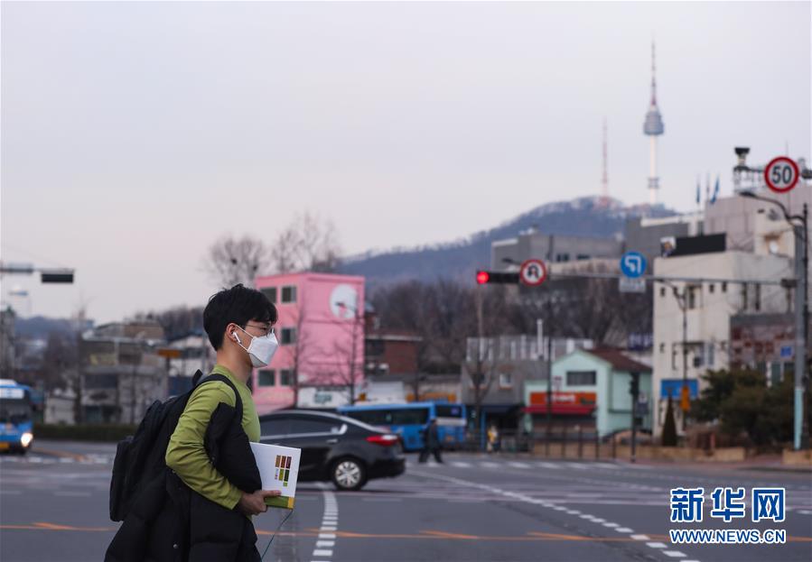 2月24日,在韓國(guó)首爾,一名男子行走在龍山區(qū)的道路上。 新華社記者 王婧嬙 攝