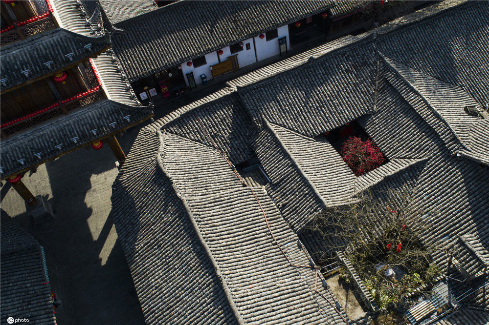 2020年2月14日,初春時節(jié),陽光明媚。四川閬中古城地標中天樓旁的張家小院天井中的海棠樹繁花似錦。四川省重點文物保護單位張家小院這道“火熱”的風景,是當?shù)睾芏嗳说南蛲屯獾赜慰碗y忘的記憶。王玉貴/IC photo