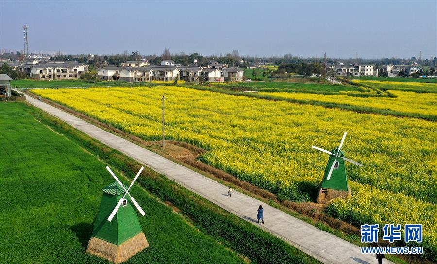 2月25日在四川省崇州市農業(yè)產(chǎn)業(yè)功能區(qū)拍攝的油菜花田(無人機照片)。新華社記者王曦攝