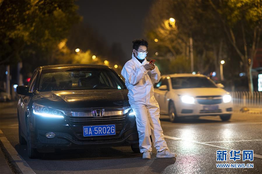 2月21日,王永朋在路邊等待,準(zhǔn)備接單。這個春節(jié)王永朋沒回老家甘肅安陽,他報名擔(dān)任高德醫(yī)護(hù)專車志愿者,開著年前剛買的新車,免費(fèi)接送醫(yī)護(hù)人員上下班。因?yàn)樽≡谖錆h新洲區(qū),距離江漢、武昌等老城區(qū)有相當(dāng)一段車程,他每天早上6點(diǎn)就起床出車,晚上十一二點(diǎn)才能回家休息,一天接送幾十位醫(yī)護(hù)人員上下班。每次到達(dá)目的地,醫(yī)生和護(hù)士下車后做的第一件事,總是向他致謝,還有不少人硬要塞錢給他,穿著防護(hù)衣、戴著口罩和護(hù)目鏡的王永朋,每次都微笑著退回了。新華社記者熊琦攝