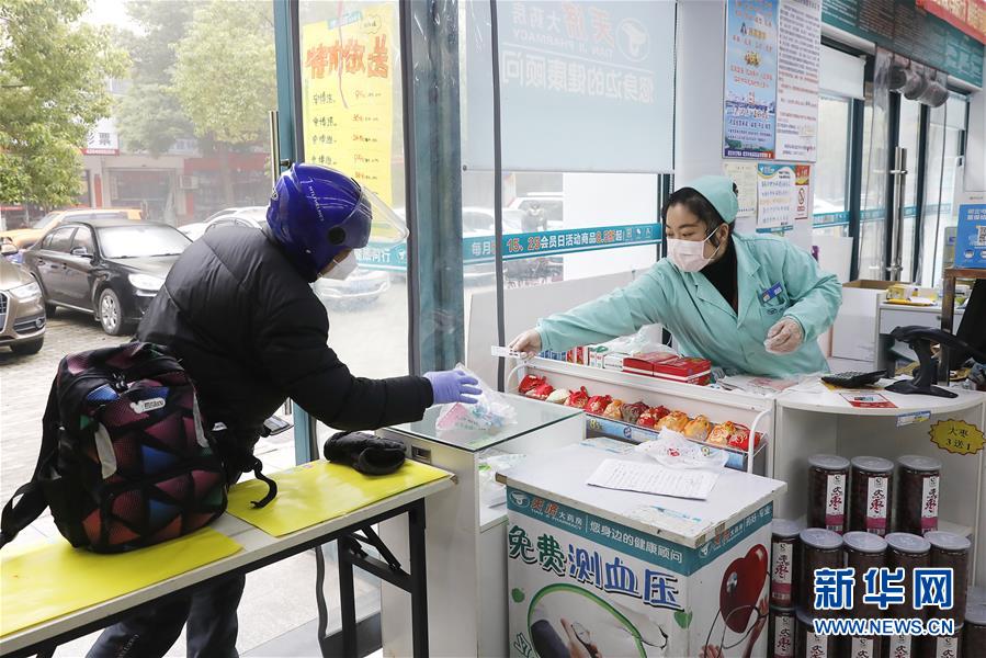 2月22日,王春波將藥品遞給前來買藥的外賣騎手。王春波是武昌天濟大藥房錦繡江南店的一名店員,在武漢下達“所有小區(qū)全面實施封閉管理”的禁令之后,很多居民買藥成了麻煩事,尤其是獨居的老年人。她知道后,主動聯(lián)系物業(yè)告知大家,如果有需要,她可以上門送藥?,F(xiàn)在,她和同事每天要派送100多單藥品,大部分都是“三高人群”服用的藥。很多顧客很感激王春波,“幸虧你們一直開業(yè),東西也齊全,一分錢都沒漲!”王春波說:“關(guān)鍵時期,大家都是在相互幫忙,這就是很平常、很普通的一件事?!毙氯A社記者熊琦攝