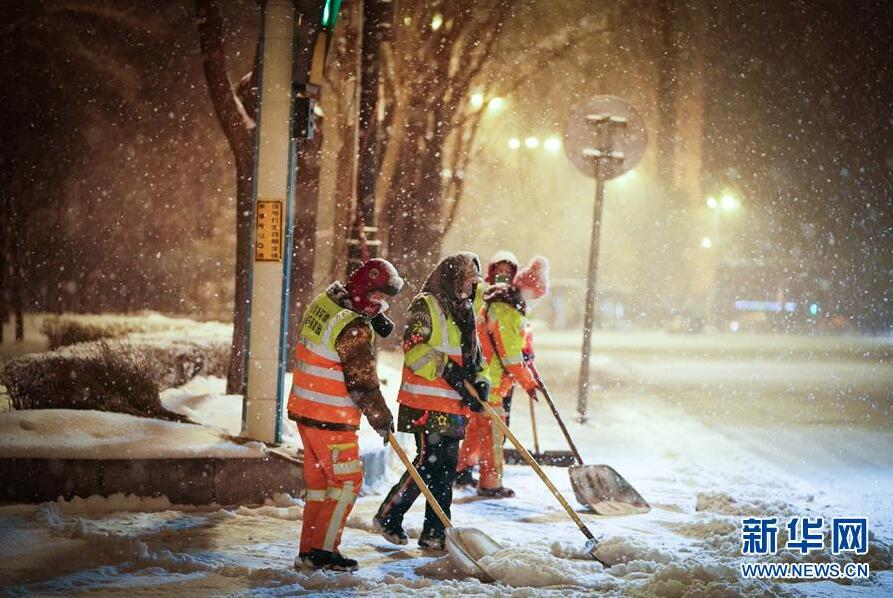 2月28日,環(huán)衛(wèi)工人在哈爾濱市的道路上清理積雪。