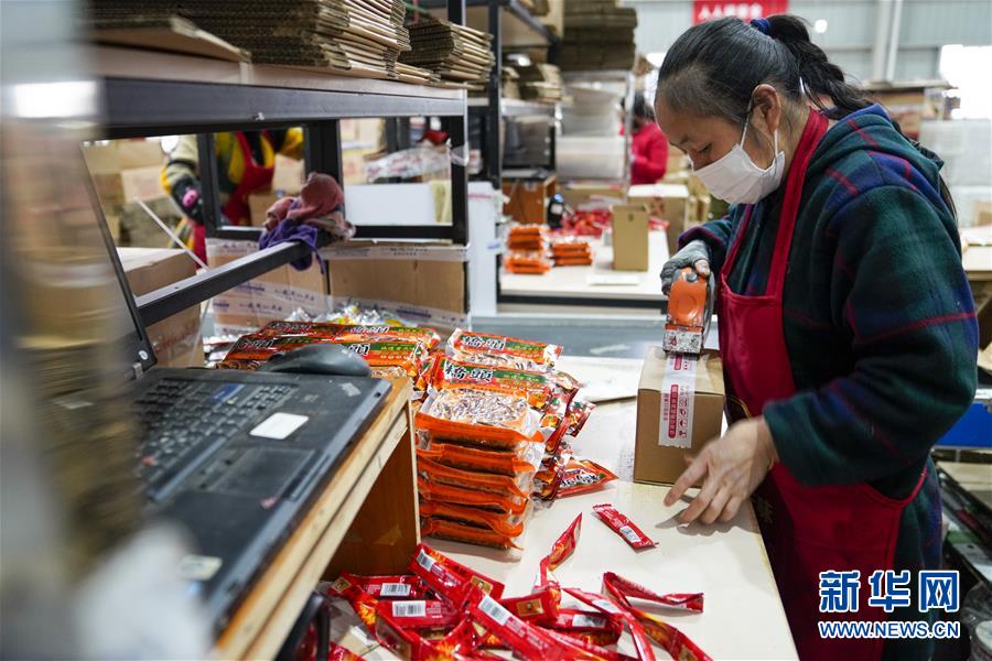 2月27日,在秀山(武陵)現(xiàn)代物流園區(qū)的電商云倉內(nèi),工人在按照訂單配貨。地處重慶市秀山縣的秀山(武陵)現(xiàn)代物流園區(qū),是渝湘黔三省市交界地區(qū)的區(qū)域性物流中心。重慶市秀山縣在做好新冠肺炎疫情防控工作前提下,當(dāng)?shù)卣e極幫助電商、物流企業(yè)解決招工、運輸、銷售等方面的實際問題,推動秀山(武陵)現(xiàn)代物流園區(qū)快速進入全面復(fù)工復(fù)產(chǎn)階段。據(jù)介紹,隨著物流園區(qū)的電商和物流企業(yè)全面復(fù)工復(fù)產(chǎn),既滿足當(dāng)?shù)厝罕姷奈镔Y供應(yīng),又幫助當(dāng)?shù)剞r(nóng)產(chǎn)品通過電商平臺實現(xiàn)快速銷售。新華社記者劉潺攝