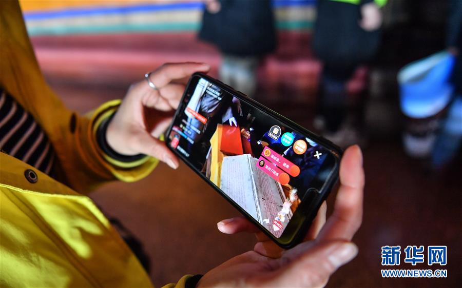 3月1日,布達(dá)拉宮管理處講解員次仁卓嘎展示手機(jī)上的直播界面。新華社記者晉美多吉攝