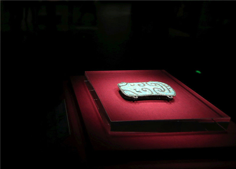 2019年10月19日,河南洛陽(yáng),二里頭夏都遺址博物館。二里頭夏都遺址博物館鎮(zhèn)館之寶“鑲嵌綠松石獸面紋銅牌飾”。