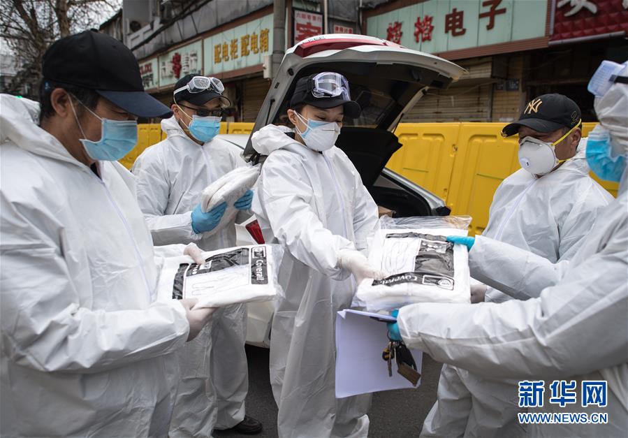 2月29日,W大武漢緊急救援隊(duì)隊(duì)長(zhǎng)王紫懿(中)為隊(duì)員發(fā)放防護(hù)服。她說,現(xiàn)在防護(hù)物資十分緊缺,隊(duì)員們都在省著用,希望能撐到疫情結(jié)束。新華社記者 肖藝九 攝