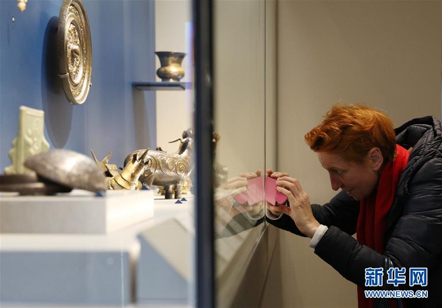3月2日,一名女子在法國巴黎賽努奇亞洲藝術(shù)博物館舉辦的媒體預(yù)展上參觀。 新華社記者 高靜 攝