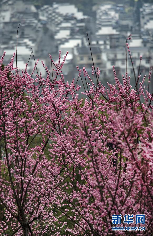 3月2日,盛開的春梅映襯著平利縣長(zhǎng)安鎮(zhèn)高峰村徽派農(nóng)舍。新華社記者陶明攝