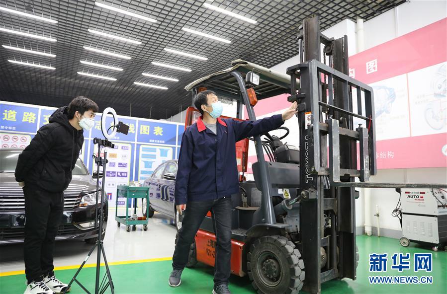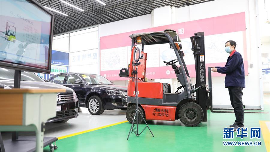 3月4日,職教城內(nèi)的鞍山市交通運(yùn)輸學(xué)校的楊永祥老師為學(xué)生進(jìn)行物流叉車實(shí)訓(xùn)網(wǎng)絡(luò)授課。遼寧省鞍山市職教城內(nèi)的各類職業(yè)教育學(xué)校從3月2日恢復(fù)網(wǎng)絡(luò)授課以來,教師們設(shè)置了豐富多彩的課程,提高1萬余名學(xué)生線上學(xué)習(xí)的積極性。新華社記者 姚劍鋒 攝