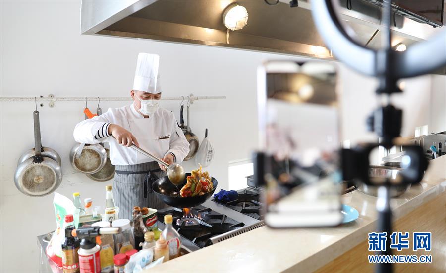 3月4日,職教城內(nèi)的鞍山市現(xiàn)代服務(wù)學(xué)校的李崇老師為學(xué)生進(jìn)行遼菜烹飪實(shí)訓(xùn)網(wǎng)絡(luò)授課。遼寧省鞍山市職教城內(nèi)的各類職業(yè)教育學(xué)校從3月2日恢復(fù)網(wǎng)絡(luò)授課以來,教師們?cè)O(shè)置了豐富多彩的課程,提高1萬余名學(xué)生線上學(xué)習(xí)的積極性。新華社記者 姚劍鋒攝