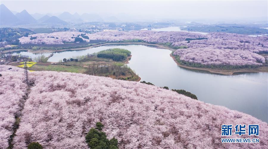 3月12日拍攝的貴安新區(qū)櫻花觀光園風(fēng)景(無人機(jī)照片)。 近日,貴州省貴安新區(qū)櫻花觀光園內(nèi)櫻花競相盛開,花團(tuán)錦簇間春意盎然。據(jù)介紹,疫情防控期間,為避免人群聚集,櫻花園暫不接待游客。 新華社記者 陶亮 攝