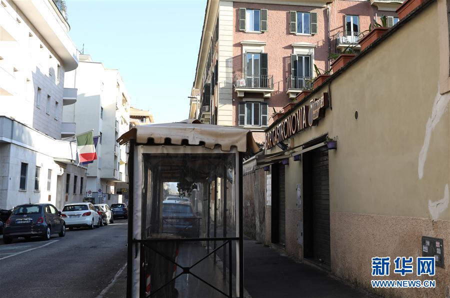 3月15日,在意大利首都羅馬,一家咖啡店因疫情關(guān)閉。新華社記者程婷婷攝