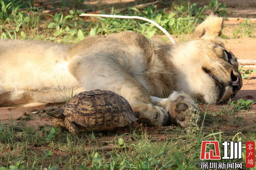 一只笨獅子瞄準烏龜當“零食”,結果吃到生氣!