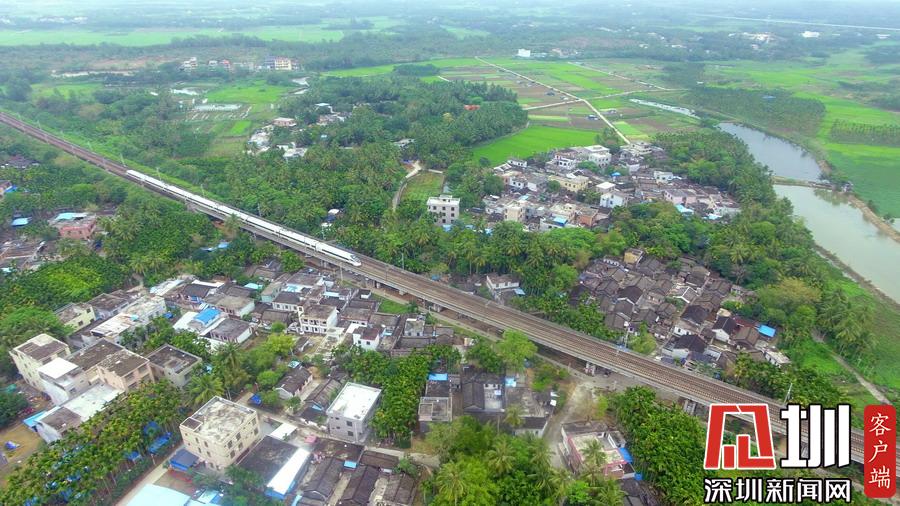 2020年3月17日,海南環(huán)島鐵路一列動車從春光明媚的瓊海城區(qū)經過。