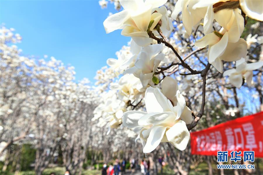 3月18日拍攝的百花公園內盛開的玉蘭花。