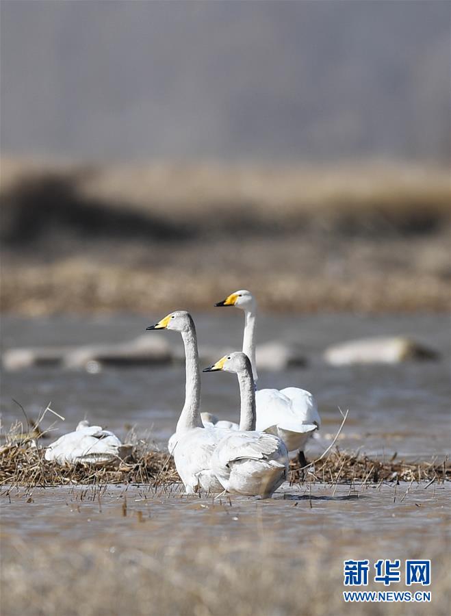 這是3月18日在準(zhǔn)格爾旗大路鎮(zhèn)的黃河淺灘上拍攝的候鳥。 新華社記者 于嘉 攝