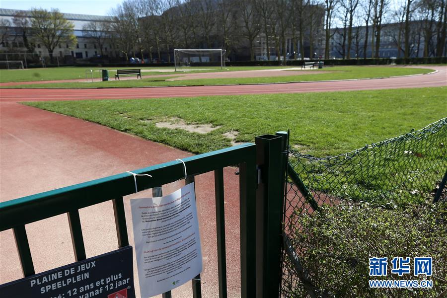 這是3月18日在比利時(shí)布魯塞爾拍攝的一處關(guān)閉的運(yùn)動(dòng)場。 新華社記者 張鋮 攝