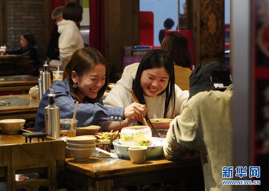 3月21日,在四川省成都市的一家火鍋店內(nèi),顧客在就餐。近日,在做好新冠肺炎疫情防控措施的基礎(chǔ)上,四川省成都市的火鍋店逐漸恢復(fù)營業(yè)。新華社記者李夢馨攝