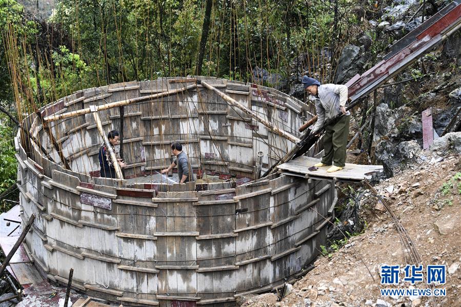 這是廣西大化瑤族自治縣七百弄鄉(xiāng)戈從村弄階屯群眾在修建水柜(2016年11月23日攝)。廣西有近一半貧困人口生活在石漠化地區(qū),涉及數(shù)十個(gè)縣區(qū)。這里也是廣西飲水保障程度最低的地區(qū),解決貧困人口飲水問題是廣西脫貧攻堅(jiān)戰(zhàn)“硬仗中的硬仗”。“十三五”以來,廣西加快實(shí)施農(nóng)村飲水安全鞏固提升工程。因地制宜,采取新建、擴(kuò)建及管網(wǎng)延伸等多種措施,補(bǔ)齊貧困地區(qū)水利薄弱短板,進(jìn)一步提升石漠化地區(qū)群眾飲水安全保障水平,助推脫貧攻堅(jiān)。新華社記者張愛林?jǐn)z