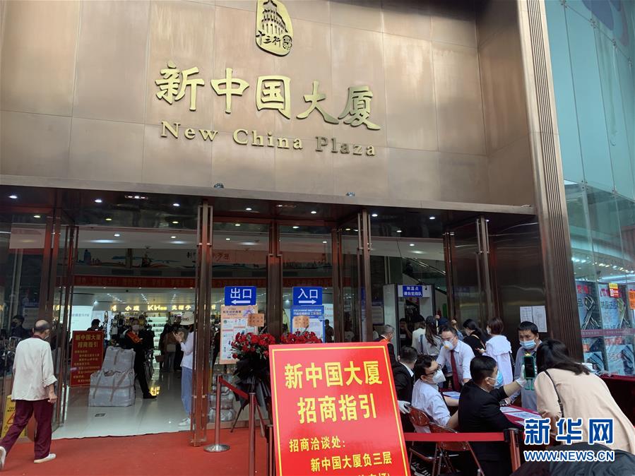 在廣州市新中國大廈門口,顧客排隊進行安全檢查(3月21日攝)。新華社記者周穎攝