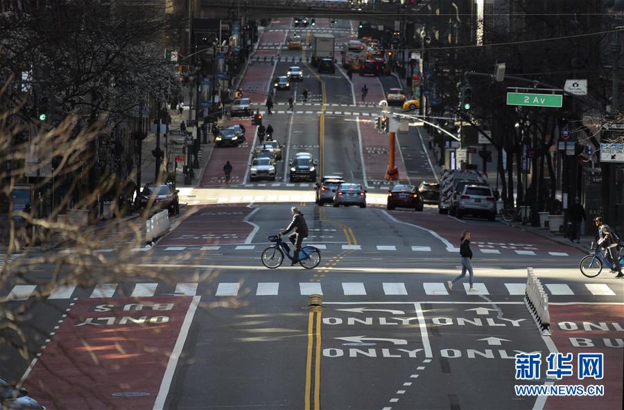 3月21日,在美國紐約,以往繁忙的街道上車輛寥寥。美國紐約州、伊利諾伊州、康涅狄格州20日發(fā)布針對本州居民的“居家令”,以遏制新冠病毒傳播。這些“居家令”涵蓋紐約、洛杉磯、芝加哥等大城市,影響數(shù)千萬人。白宮20日發(fā)表聲明說,總統(tǒng)特朗普已宣布紐約州出現(xiàn)“重大災難”,命令聯(lián)邦政府支援該州抗擊新冠肺炎疫情。新華社記者王迎攝