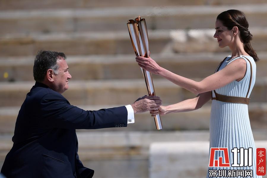 2020年3月18日,2020年東京奧運(yùn)會火炬交接儀式在希臘雅典帕納辛奈科體育場舉行。