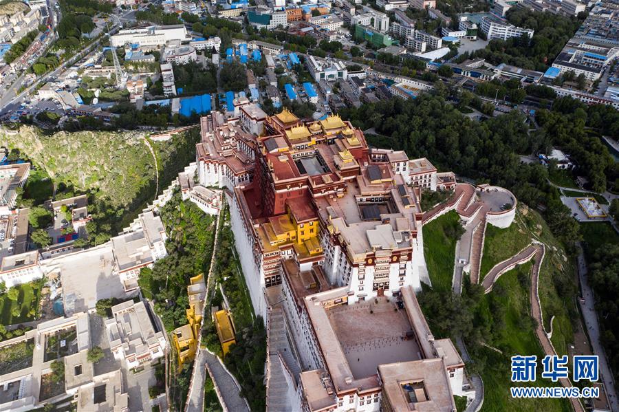 8月10日無人機拍攝的拉薩布達拉宮。新華社記者李鑫攝