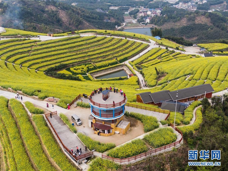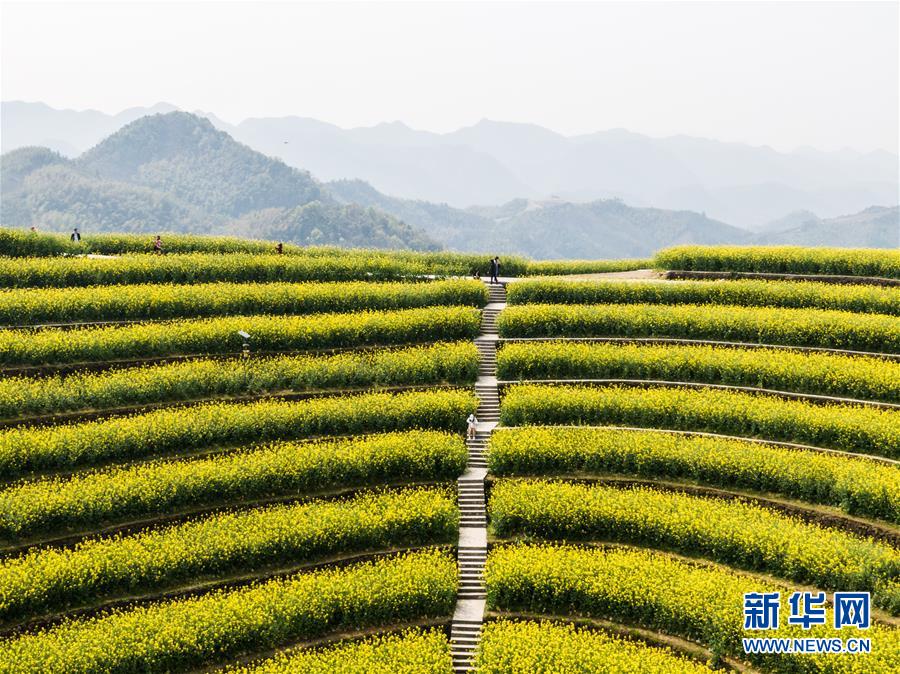 3月25日,游客在新登鎮(zhèn)上旺村黑山頂?shù)挠筒嘶êV凶耘?。新華社記者徐昱攝