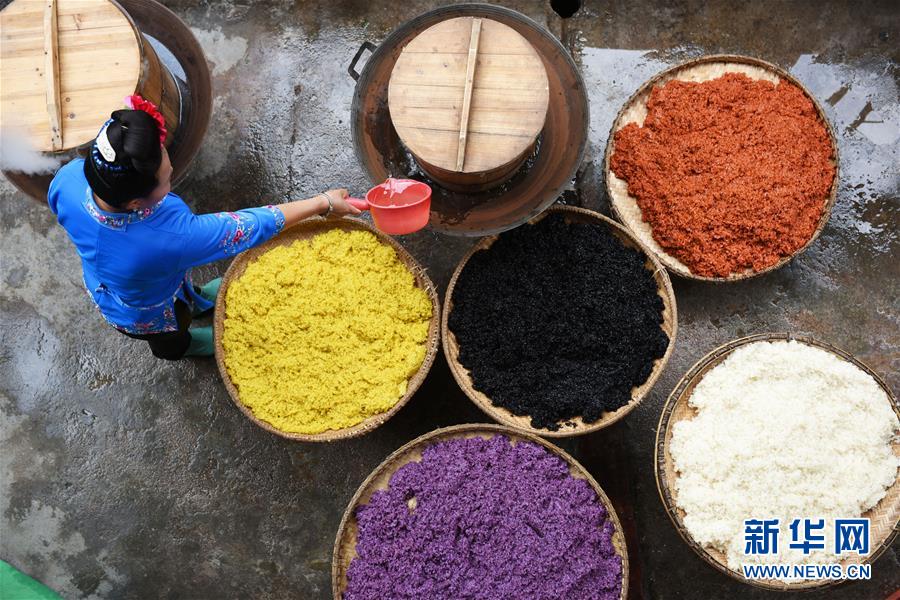 探秘“壯族三月三”五色糯米飯制作