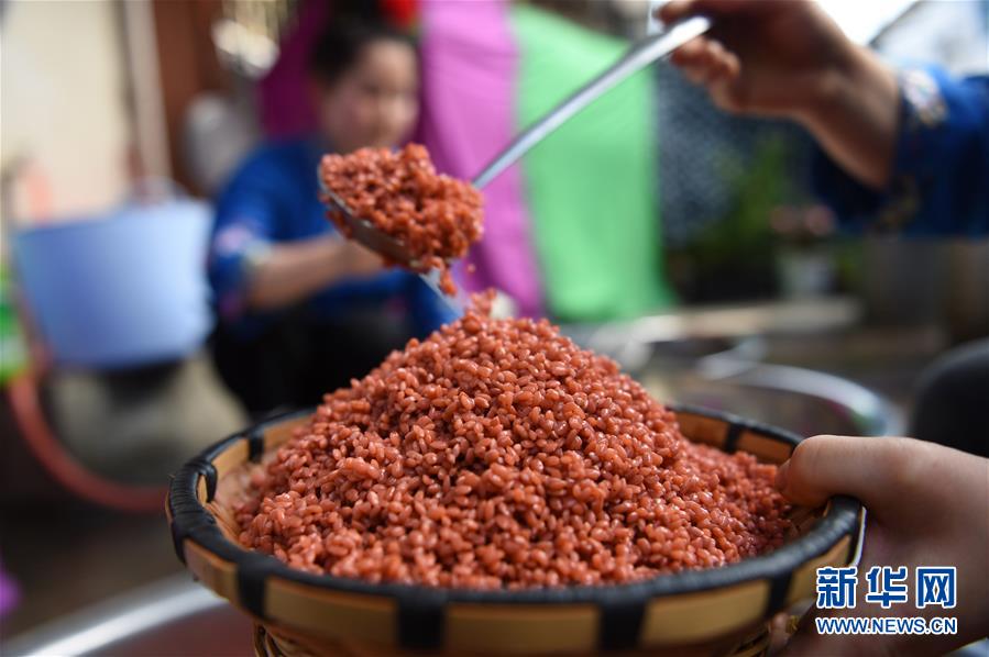 探秘“壯族三月三”五色糯米飯制作