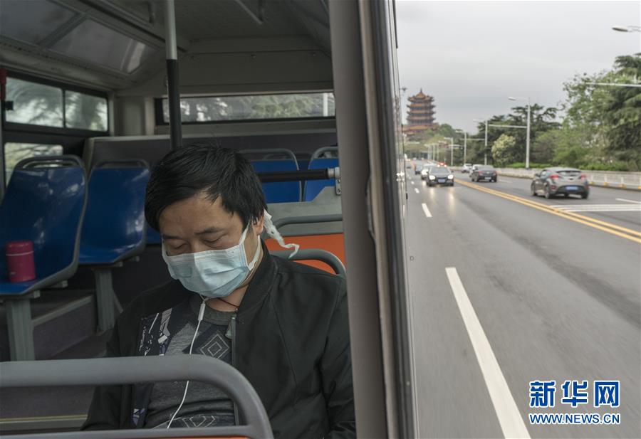 3月25日,61路公交車駛過黃鶴樓后進(jìn)入武漢長江大橋。新華社記者費茂華攝