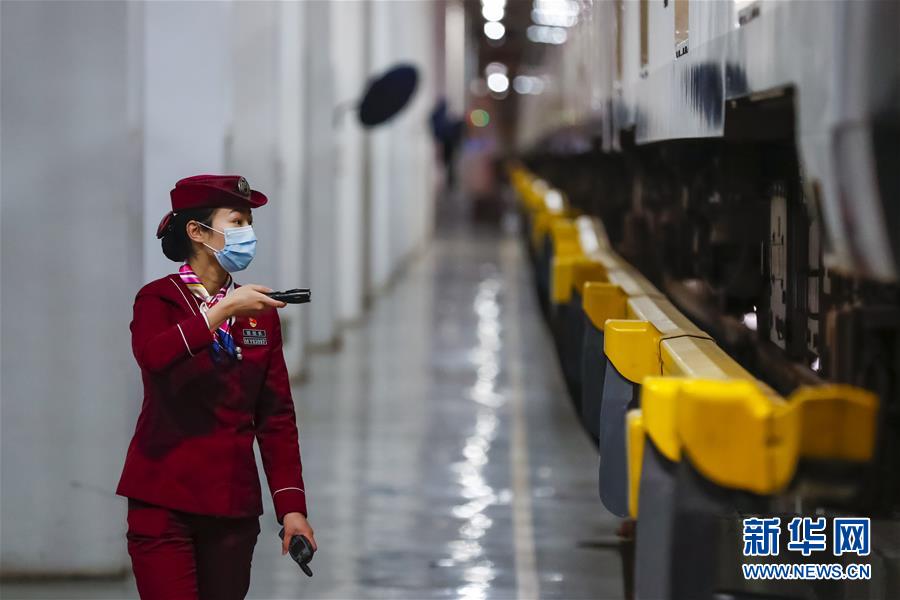 3月28日,武漢地鐵運營有限公司司機(jī)吳亞在常青車輛段檢查車輛情況。新華社記者沈伯韓攝