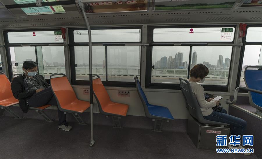 3月25日,61路公交車行駛在武漢長江大橋上。新華社記者費茂華攝