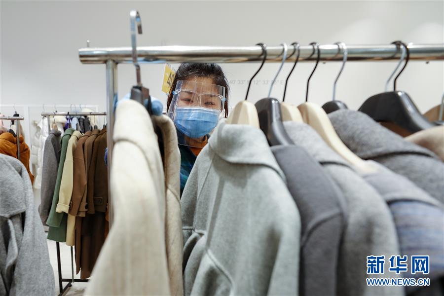 3月30日,在武漢市武商世貿(mào)廣場,銷售員在整理貨架上的衣服。當日,武漢市多家商場開門迎客。新華社記者沈伯韓攝