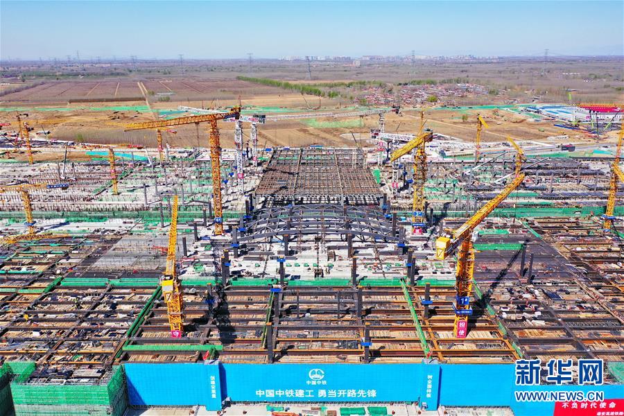 這是3月27日拍攝的京雄城際鐵路雄安站施工現(xiàn)場(chǎng)(無(wú)人機(jī)照片)。河北雄安新區(qū)即將年滿(mǎn)三周歲。自轉(zhuǎn)入大規(guī)模實(shí)質(zhì)性建設(shè)階段以來(lái),雄安新區(qū)多項(xiàng)重點(diǎn)項(xiàng)目建設(shè)有序推進(jìn),正向著高質(zhì)量發(fā)展的“未來(lái)之城”穩(wěn)步邁進(jìn)。新華社記者牟宇攝