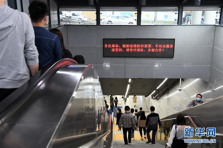 3月18日晚高峰時段,在深圳地鐵車公廟站進站通道,電子屏幕提醒乘客車站正在進行客流管控。近期,隨著復工復產(chǎn)的持續(xù)推進,深圳地鐵出現(xiàn)早晚客流高峰。為避免客流聚集擁擠,深圳地鐵對11座大客流站點實施常態(tài)化客流管控,對17座重點車站采取視情況客流管控。在高峰時段,乘客進入大客流站點需通過站外護欄繞行,分批、間隔、有序進站,使用深圳通卡乘車還需掃描二維碼進行實名登記。新華社記者梁旭攝
