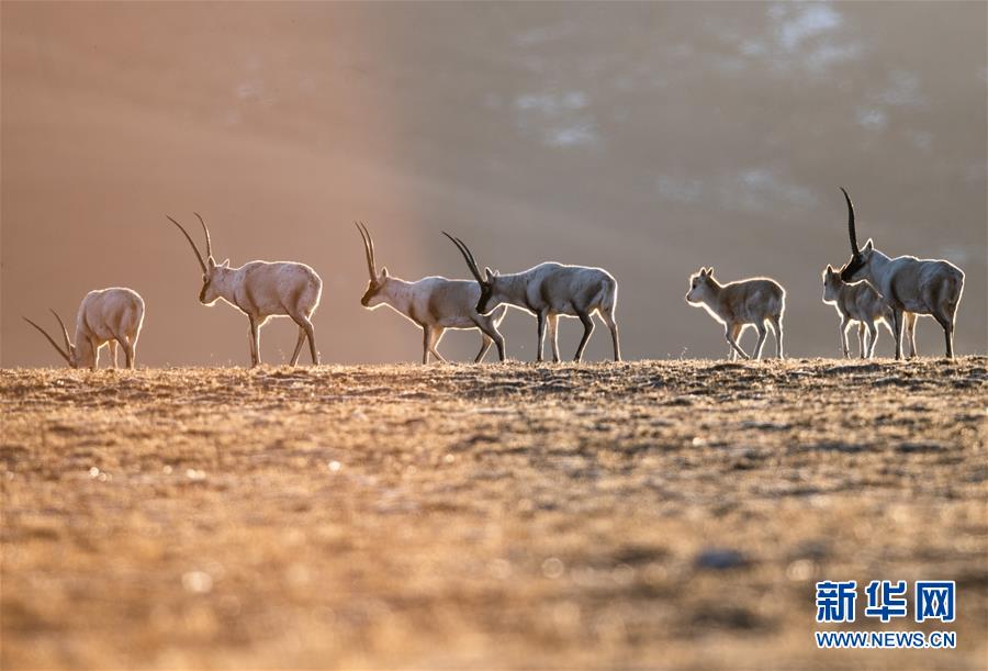 西藏羌塘自然保護區(qū)內(nèi)的藏羚羊(2019年1月31日攝)。新華社記者普布扎西攝
