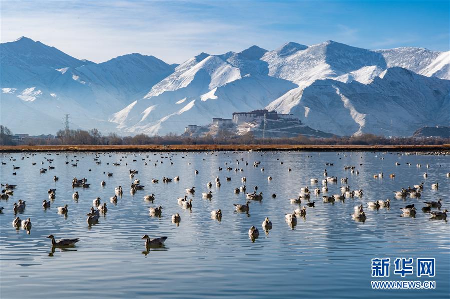 拉薩河中休憩的水鳥(3月14日攝)。新華社記者孫非攝