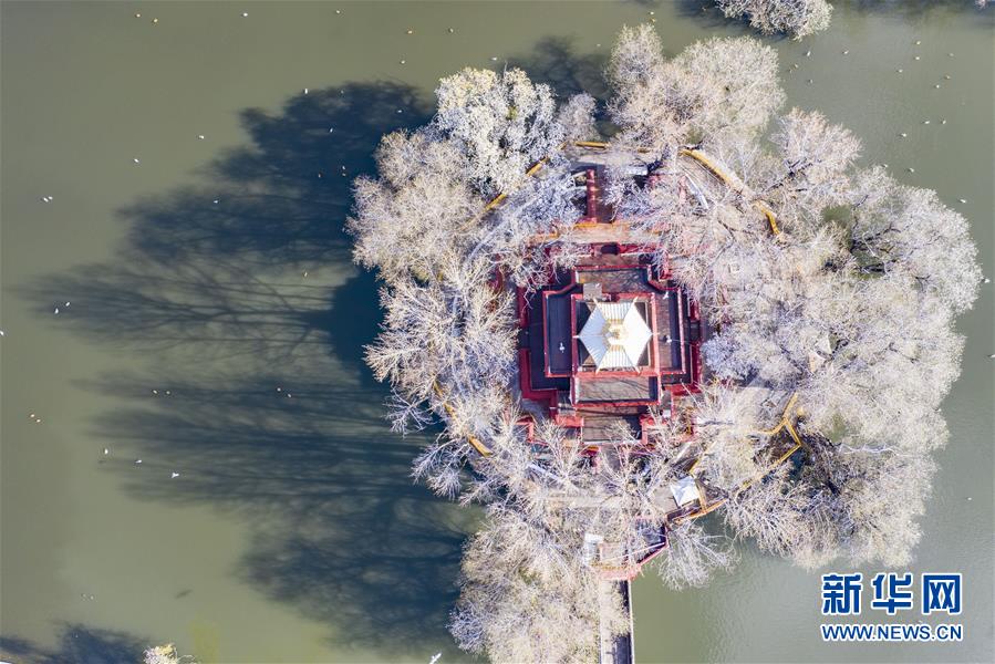 4月5日拍攝的拉薩宗角祿康公園雪景(無人機(jī)照片)。新華社記者普布扎西攝